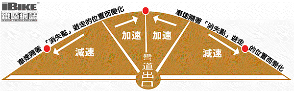 出彎時,拉正車身、減速,路線會被壓迫成只有外拋可以選擇。