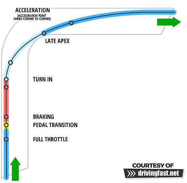 以彎道聖經油門開啟時機來談,"當傾角完成時,就該打開油門"。